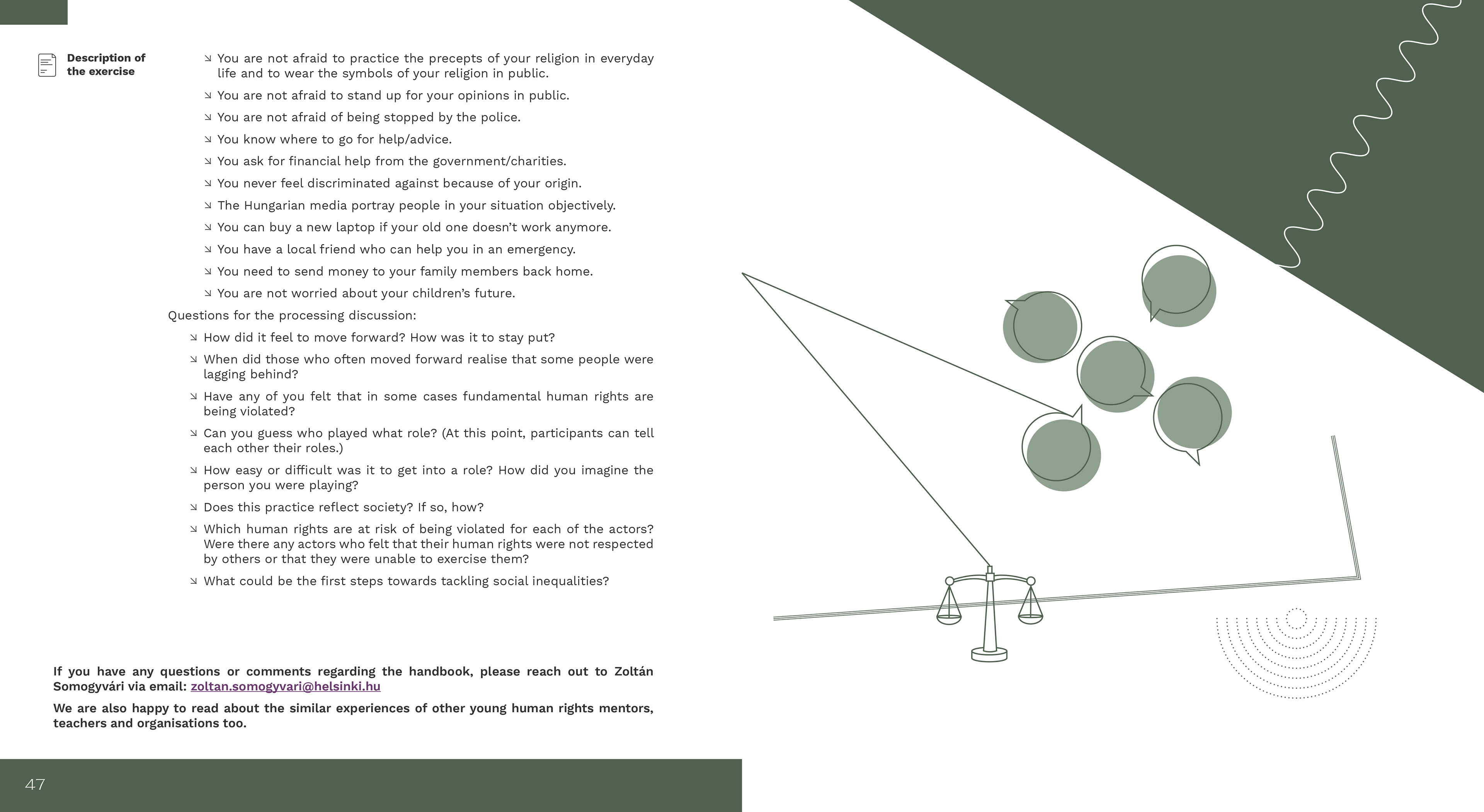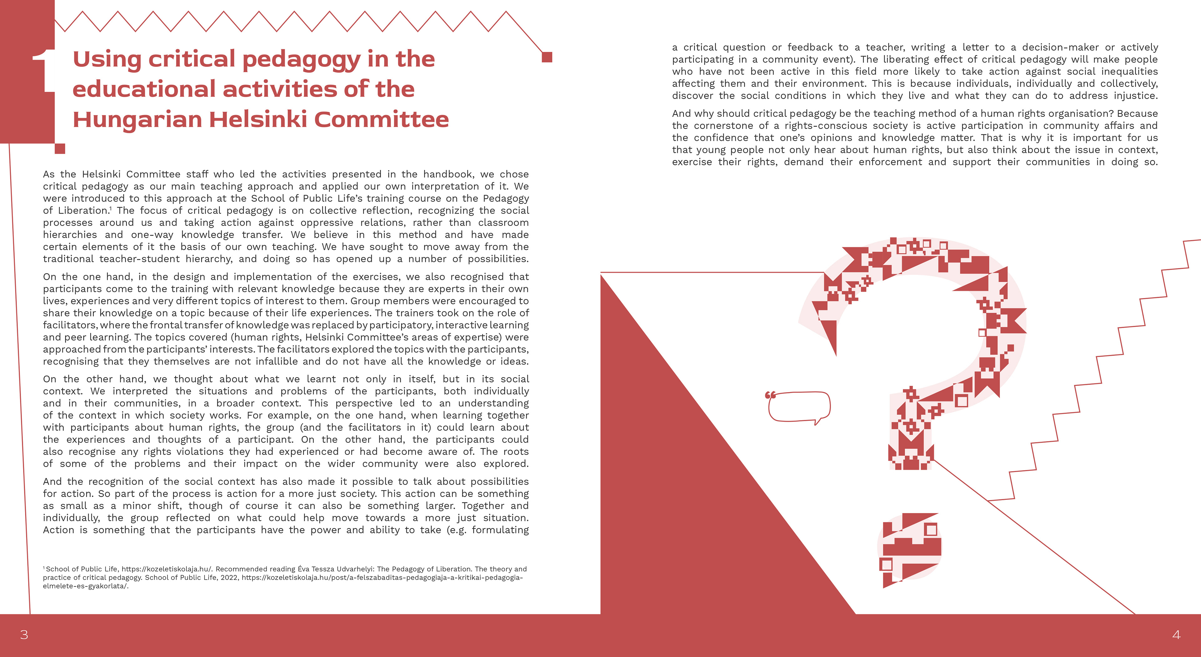 The Hungarian Helsinki Committee has published a handbook on the involvement of young people and teachers in human rights work. I had the opportunity to work on the editorial and graphic design of the handbook.